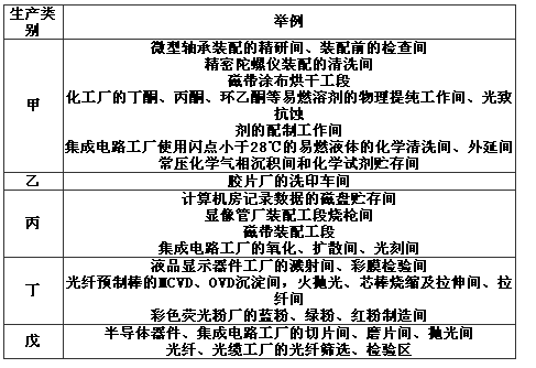 表B 潔凈廠房生產(chǎn)工作間的火災(zāi)危險性分類舉例