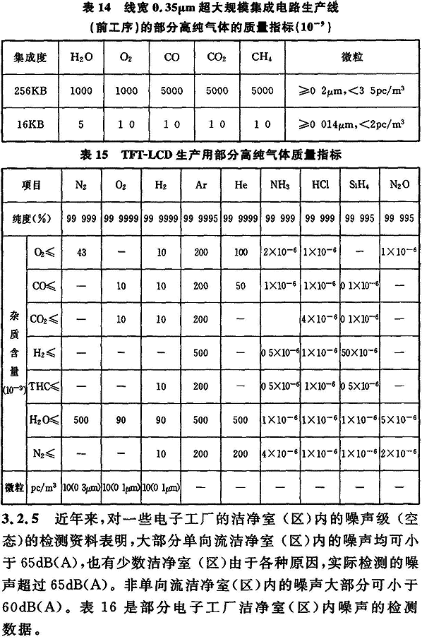 3.2.2、3.2.3 電子產品的種類繁多,隨著微型化、精密化、高純度、高質量和高可靠的電子產品品種的增加,需要在空氣懸浮粒子受控環(huán)境中進行全過程生產或部分生產的電子產品主要有:各種半導體材料及其器件生產、集成電路生產、化合物半導體生產、光電子生產、薄膜晶體管液晶顯示器(Thin Film Transistor Liguid Crystal Display,簡稱TFT-LCD)生產、微硬盤驅動器(Hard Disk Driver,簡稱HDD)生產、等離子顯示器(Plasma Display Panel,簡稱PDP)生產、磁頭和磁帶生產、光導纖維生產、印制電路板等。