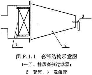 套筒(測定回、排風高效過濾風口時需要使用,罩住整個入口,使檢漏范圍包括邊框,長度應(yīng)使通過氣流時間為0.5s~1s,見圖F.1.1)。