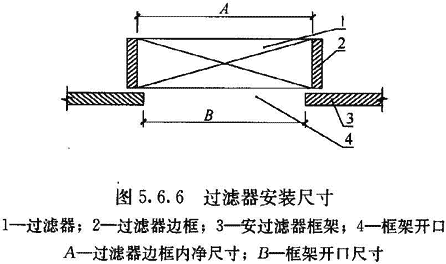 5.6.6 送風(fēng)末端過(guò)濾器安裝前,應(yīng)再次檢查承載過(guò)濾器的框架開(kāi)口尺寸,開(kāi)口尺寸不得大于送風(fēng)末端過(guò)濾器的邊框內(nèi)凈尺寸(圖5.6.6)。