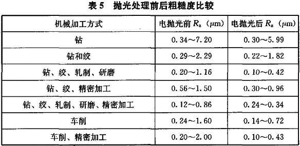 系統(tǒng)內(nèi)表面加以處理,對減少管材自身可能造成的污染十分有效,目前,研磨、電拋光是管材內(nèi)表面處理的最佳方式,如果在機械加工后經(jīng)電拋光,則管路系統(tǒng)內(nèi)表面的粗糙度會得到較大的改善(見表5),為確保輸送氣體的質(zhì)量經(jīng)過管道輸送不發(fā)生變化增大了可靠性。