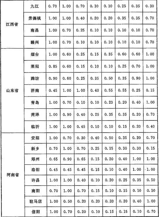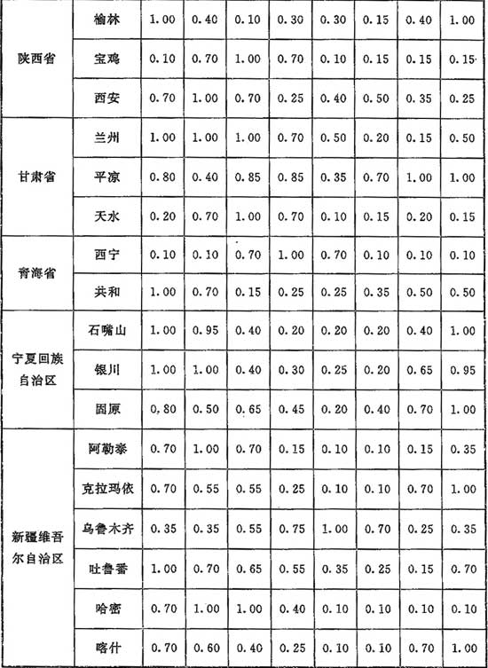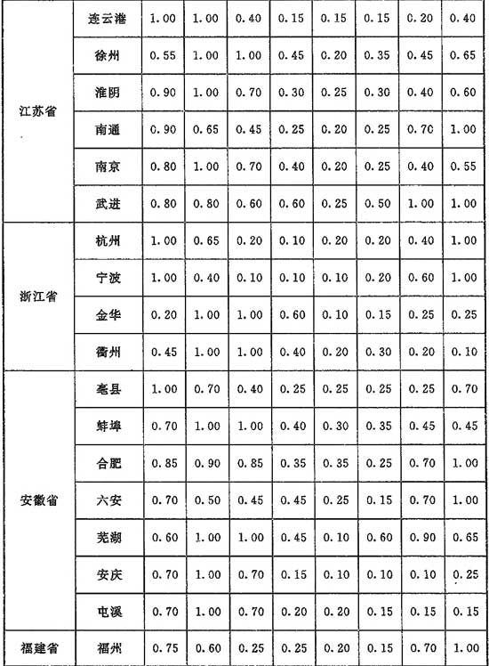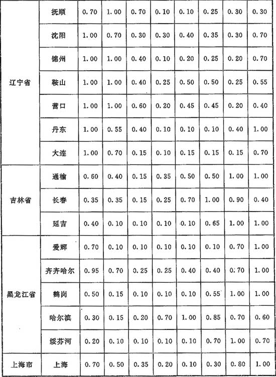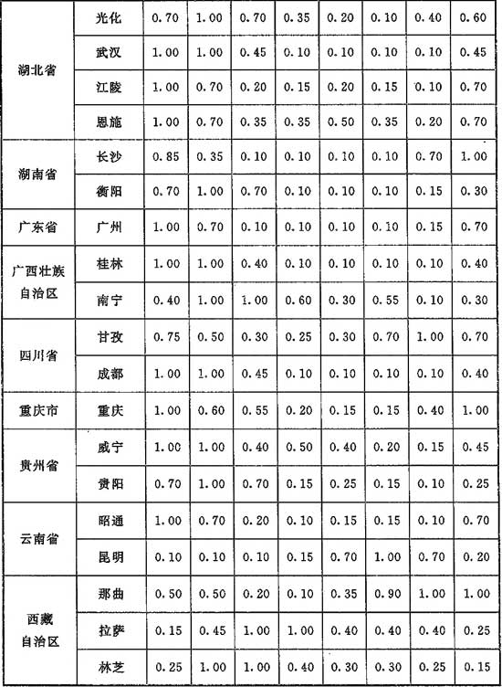 G.0.1 計(jì)算供暖熱負(fù)荷時(shí),單純風(fēng)壓作用下滲透冷空氣量的朝向修正系數(shù)應(yīng)按表G.0.1采用。