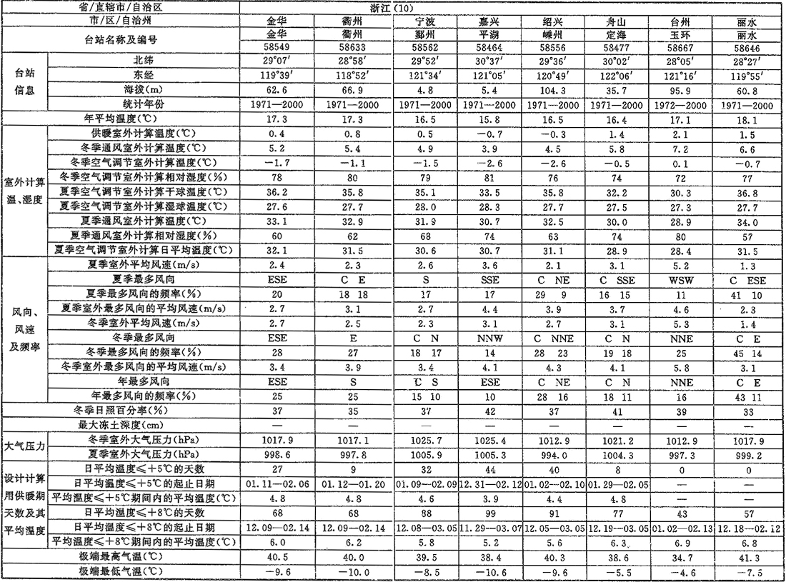 A.0.1-1 室外空氣計(jì)算參數(shù)(一)(略)