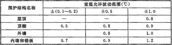 注:表中內(nèi)墻和樓板的相關(guān)數(shù)值僅適用于相鄰空氣調(diào)節(jié)區(qū)的溫差大于3℃時。