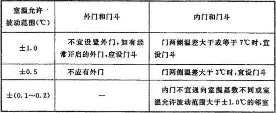 8.1.12 工藝性空氣調(diào)節(jié)區(qū)的門和門斗應(yīng)符合表8.1.12的規(guī)定。外門門縫應(yīng)嚴(yán)密,當(dāng)門兩側(cè)的溫差大于或等于7℃時,應(yīng)采用保溫門。