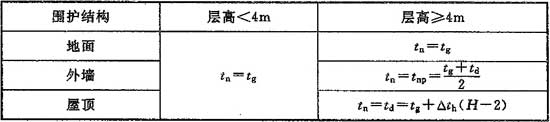 注:tn為冬季室內(nèi)計(jì)算溫度(℃),td為屋頂下的溫度(℃),tg為工作地點(diǎn)溫度(℃),tnp為室內(nèi)平均溫度(℃),△th為溫度梯度(℃/m),H為房間高度(m)。