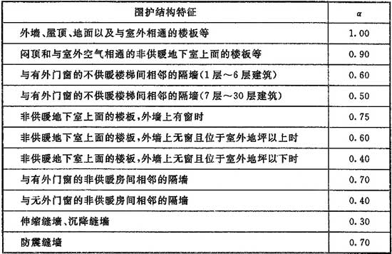 α——圍護(hù)結(jié)構(gòu)溫差修正系數(shù),按本規(guī)范表5.1.6-3采用;