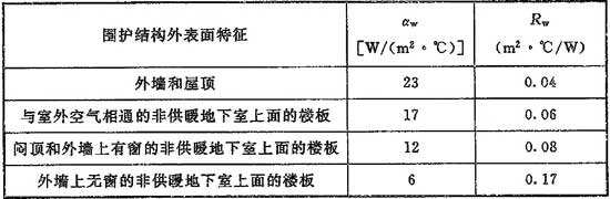 5.2.4-1 外表面換熱系數(shù)αw和換熱阻Rw