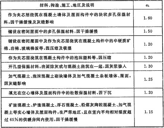 5.2.4-2 材料導(dǎo)熱系數(shù)的修正系數(shù)αλ