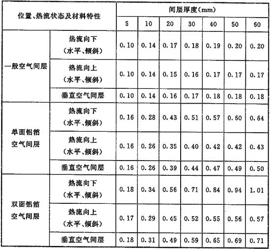 5.2.4-3 封閉的空氣間層熱阻值Rk(m2·℃/W)