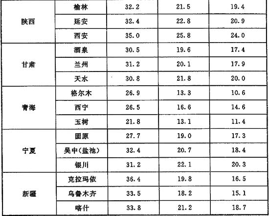 5 中國河流年均水溫的地區(qū)分布形勢大體與氣溫一致。河流年均水溫略高于當?shù)啬昃鶜鉁?,差值一般?℃~2℃。但當高山冰雪融水在河流補給中占主要地位的地區(qū)則相反,年均水溫低于氣溫1℃~2℃。中國河流水溫的年內(nèi)變化過程,大部分地區(qū)均為在春、夏增溫階段,水溫低于當?shù)貧鉁?;秋、冬降溫階段,水溫高于當?shù)貧鉁?。采用蒸發(fā)冷卻空氣處理方式,冷卻水采用直流式地表水,可降低被處理空氣溫度,此時地表水即為天然冷源。