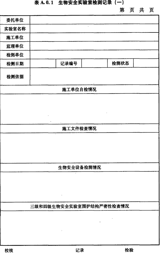 附錄A 生物安全實(shí)驗(yàn)室檢測記錄用表