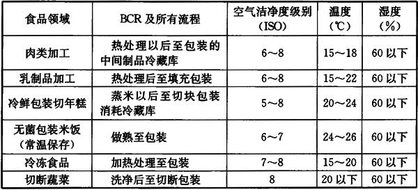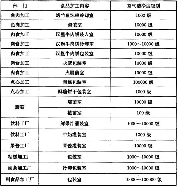 我國少數(shù)食品標(biāo)準(zhǔn)中提出潔凈用房及其級別要求,但沒有綜合性的具體設(shè)計措施。這些標(biāo)準(zhǔn)和其關(guān)于潔凈用房的要求如下: