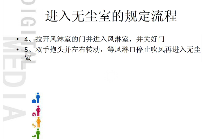 在潔凈車間中發(fā)塵主要來自人,占90%左右。潔凈車間的管理,關(guān)鍵是人員的管理,只有每位員工嚴(yán)格遵守潔凈間管理規(guī)定,才能真正發(fā)揮潔凈間的作用,從而有效保證產(chǎn)線的正常運(yùn)行,減少產(chǎn)品的人為不良率,降低成本,提高企業(yè)產(chǎn)品的競爭能力。